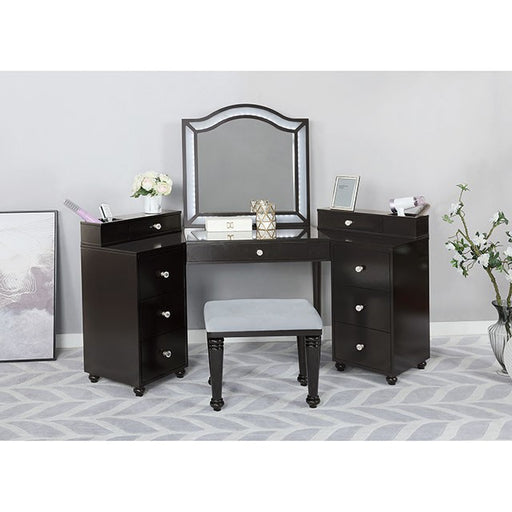 FOA WestThis lovely little vanity can double as a writing desk or workspace because the mirror lays flat as a table top when not in use. Molded trimming an...