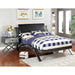 An architectural X-brace design creates an sophisticated atomosphere around the Metro bedroom set. A padded leatherette headboard is a soft contrast to the gun metal gray finish and silver metallic drawer faces. Matching dresser, mirror, media chest and night stand combine functionality and style into one.