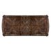 Beautiful wood inlay details and a dramatic trestle base create a grand statement with elegance galore. The ivory fabric upholstery provides a stunning contrast against the rustic natural tone finish for a look that is as cozy as it is chic. Intricate leg designs play beautifully off the delicately cut backs for a look that will inspire and amaze.