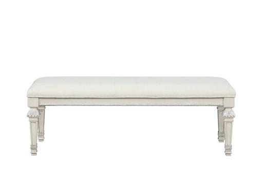 The Robbinsdale dining bench is sure to impress come mealtime. With its antiqued white finish and light gray upholstery with nailhead trim, modern ...