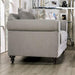 KACEY Loveseat, 62"L X 37"W X 40"H, 150lbs. Two unique pairs of pillows complete a soft pastel visual masterpiece that is made in the U.S.A. - an amazing love seat that features clean lines and faux linen fabric. The level of comfort matches the exceptional style, perfect for a lazy day of lounging - all the while appreciating the superior American construction.